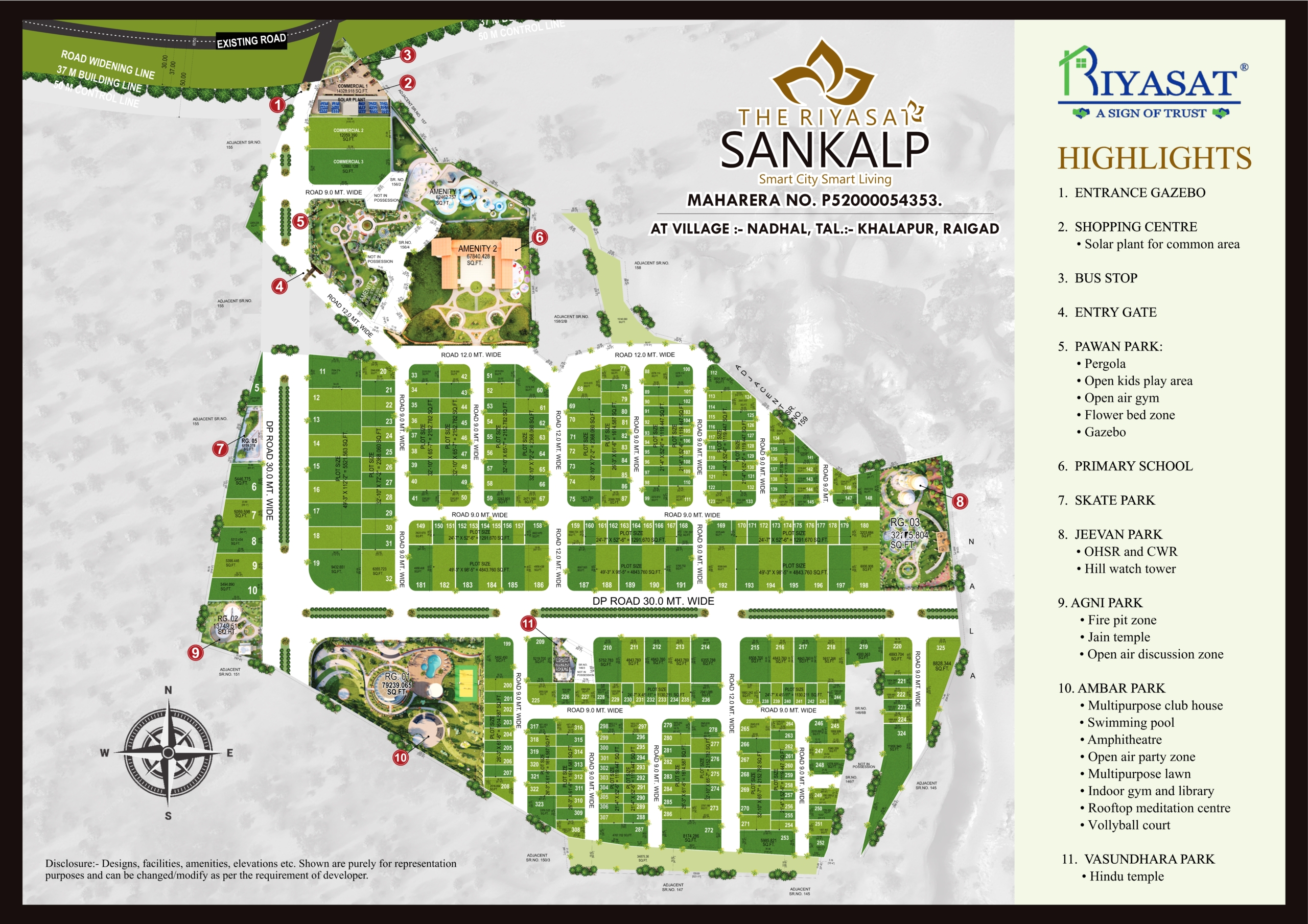 The well-planned Panvel township The Riyasat Sankalp, created by the Riyasat Group, offers NA residential and commercial plots from 1119 square feet. It offers luxurious living on 37 acres with lush green spaces, eco-friendly amenities, and modern facilities.